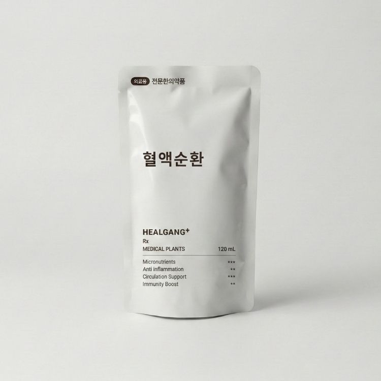 어혈 치료의 성약 혈부축어탕을 현대인의 혈액순환 저하증에 맞게 개량한 처방입니다. 막힌 혈류를 뚫고(行血), 혈관의 노폐물을 정리하여(淸血) 부종·냉증·저림과 같은 순환장애 증상에 효과적으로 작용합니다.